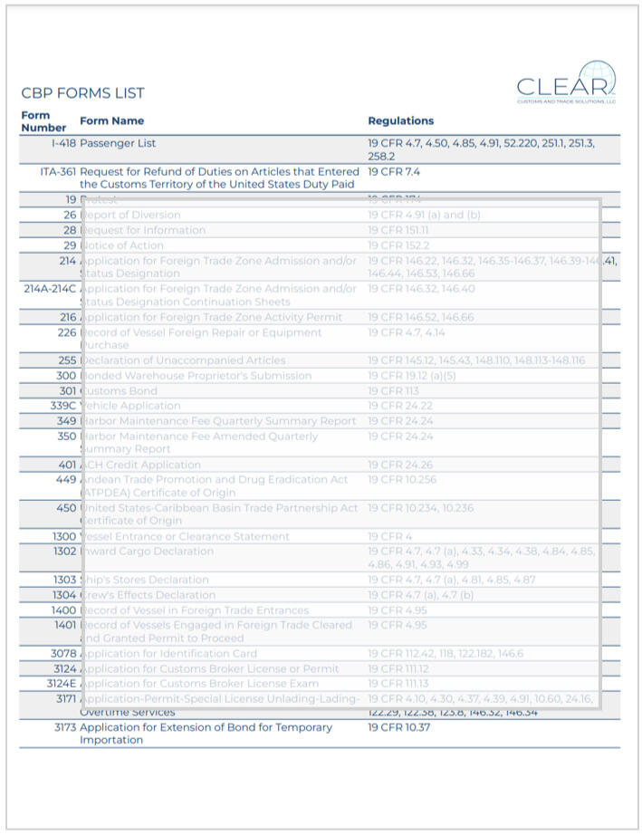 List of 66 customs-related CBP forms and corresponding regulations | Great resource to find answers quickly