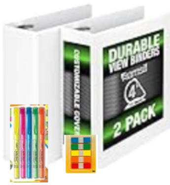 Two 4-inch binders for HTSUS General Notes and Chapters 1-98 | One 3-inch binder for HTSUS Chapter 99 | One 1-inch binder for other hardcopy materials | Five 100-count packs of adhesive tabs | One pack of highlighters